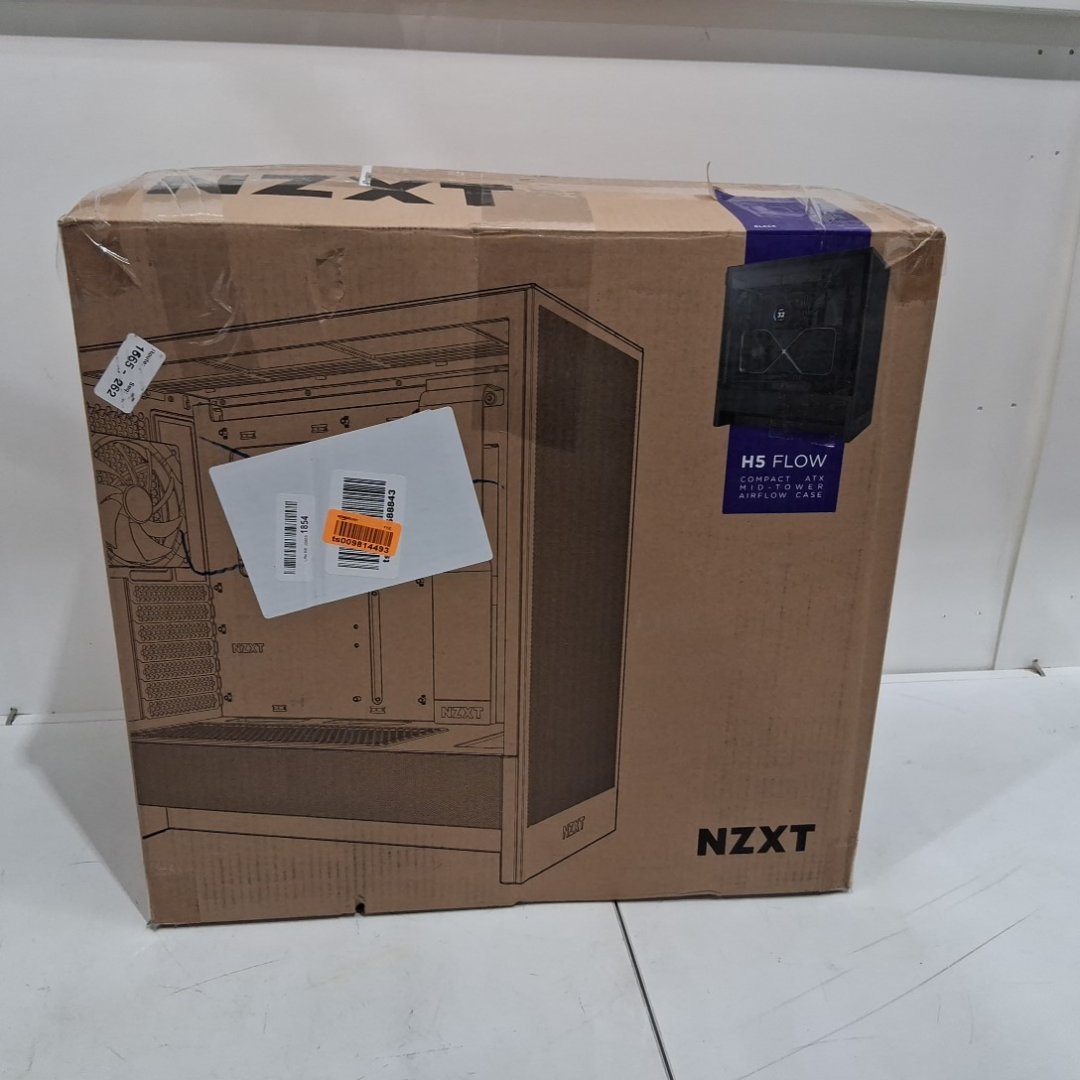 NZXT H5 FLOW Mid-Tower ATX PC Gaming Case with High-Airflow Mesh Front Panel, Tempered Glass Side Panel, Smart Cable Management System, USB-C and Supports Liquid Cooling Radiators - Black (mODEL:CC-H52FB-01)