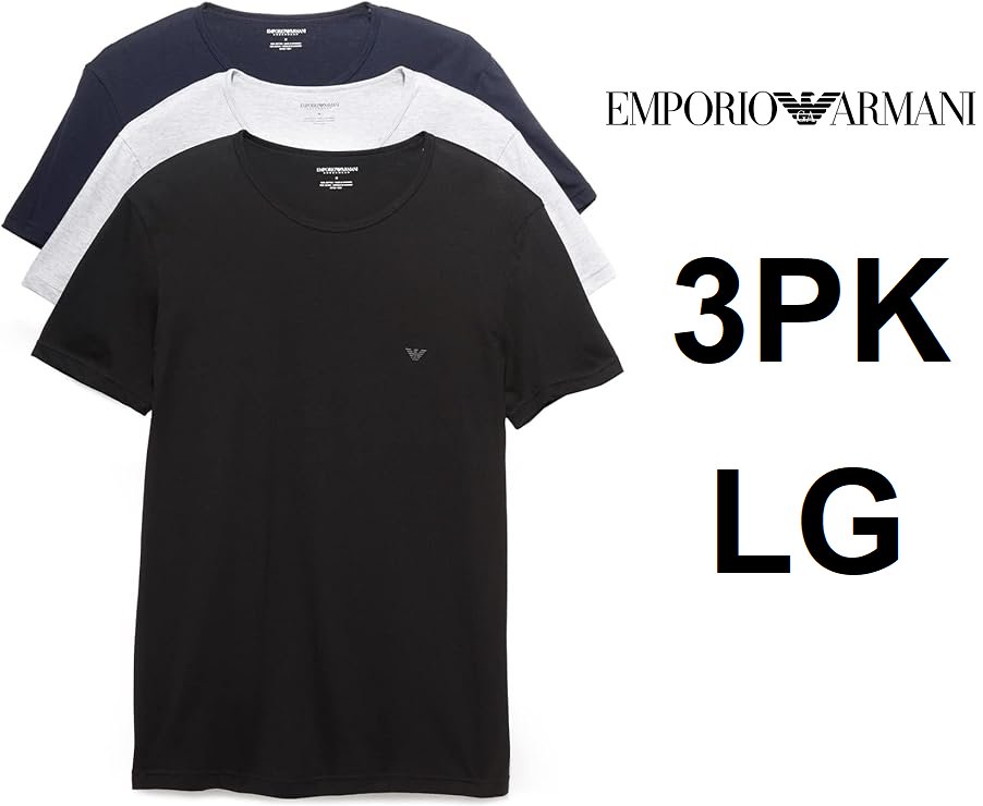 3pk men's Emporio Armani 100% cotton crew neck short sleeve tee shirt - large - black / white / grey (style: 110821-cc722)