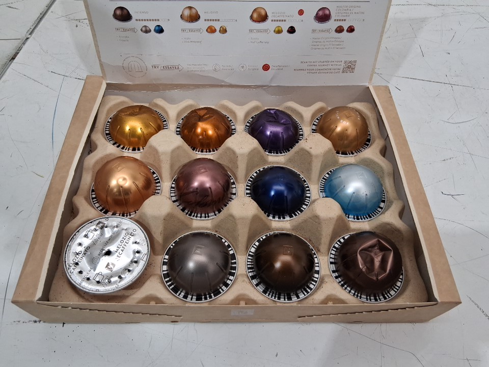 There is coffee grinds across the product from previous usage. One of the pods was used.