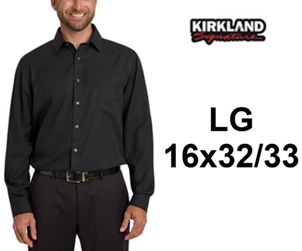 mens kirkland tailored fit button-down dress shirt - Large - 16 x 32/34 - black (style: 3918206)