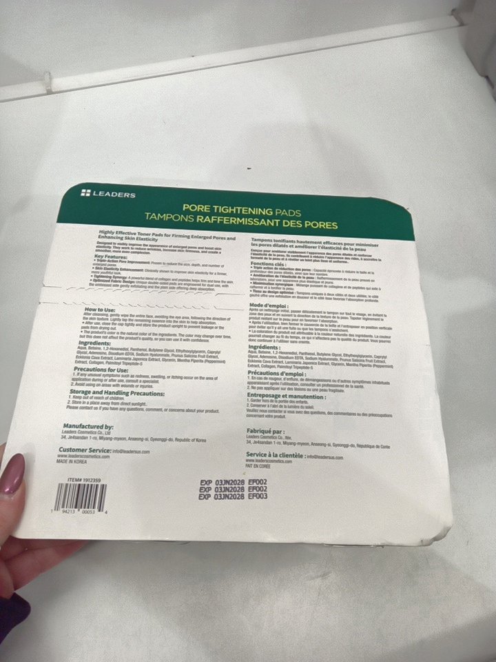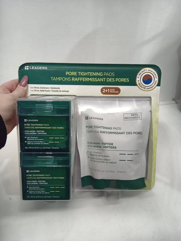 3PC Leaders K-Beauty Korean Cosmetics Pore Tightening Pads with Two Containers and Refill Pouch