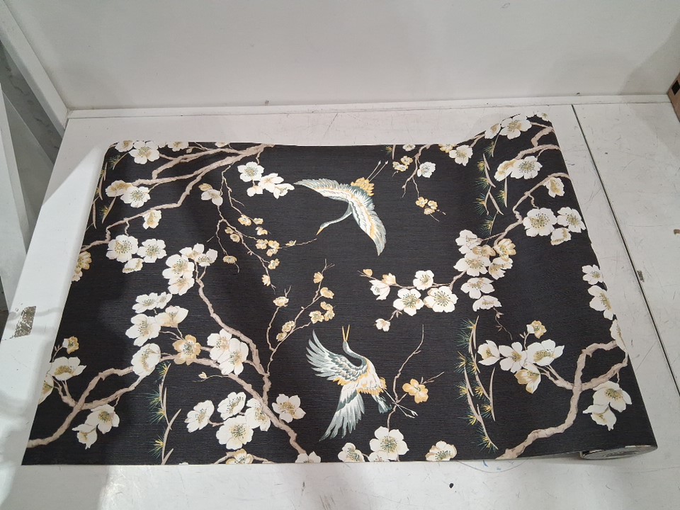 Kabuki Japan Wallpaper WITH FLOWER AND BIRD - APPROXIAMTE 30FT X 1.7FT - BLACK