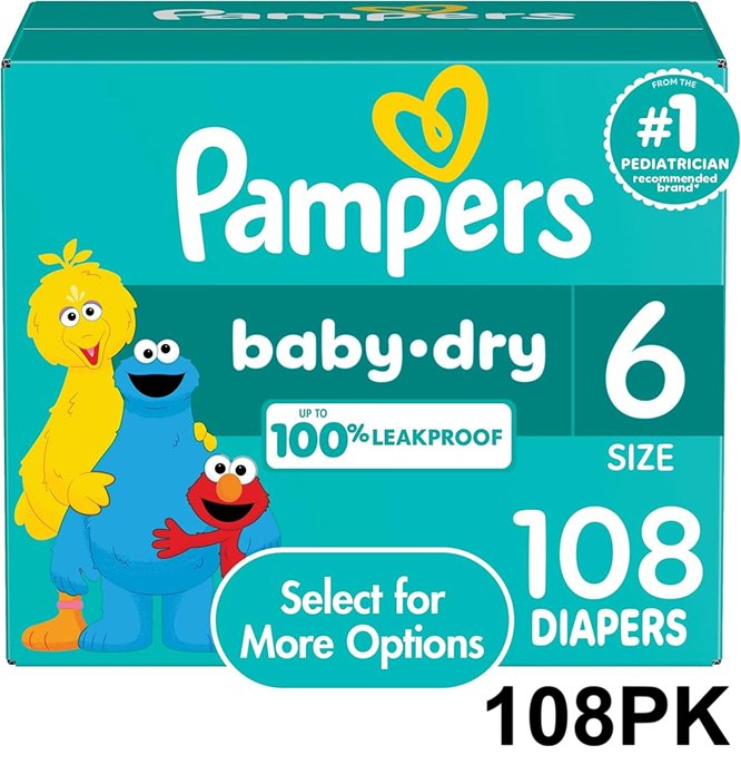 108pk Pampers Elmo Baby Dry Diapers - Size 6