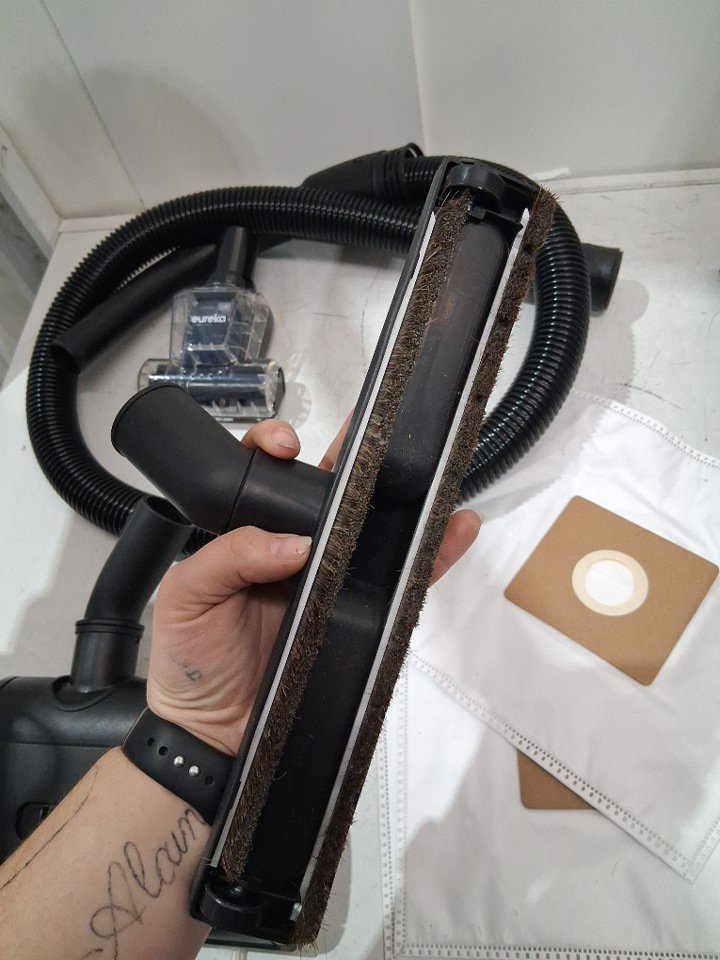 item is in excellent condition item has very light amount of dirt in hose and some of attachments from previous light use