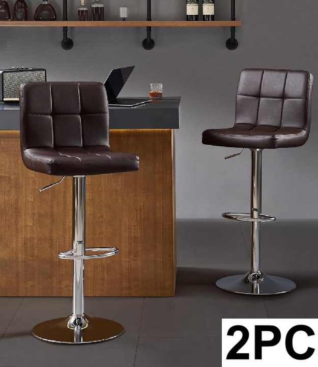2PC Nestvatto Adjustable Height Thickened Square Seat Cushion 360° Swivel Bar Stools with Back - 36" - 43" - Dark Brown (Model: BS-17)