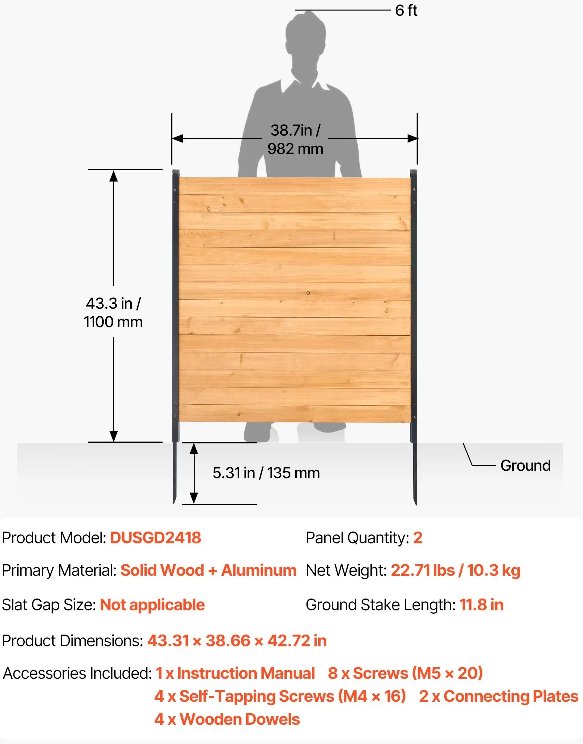 2-panel VEVOR Wood Privacy Panel Fence - 38" W x 42" - WOOD (MODEL:DUSGD2418)