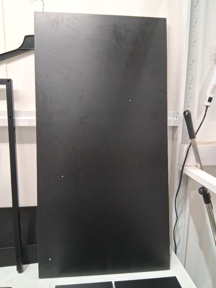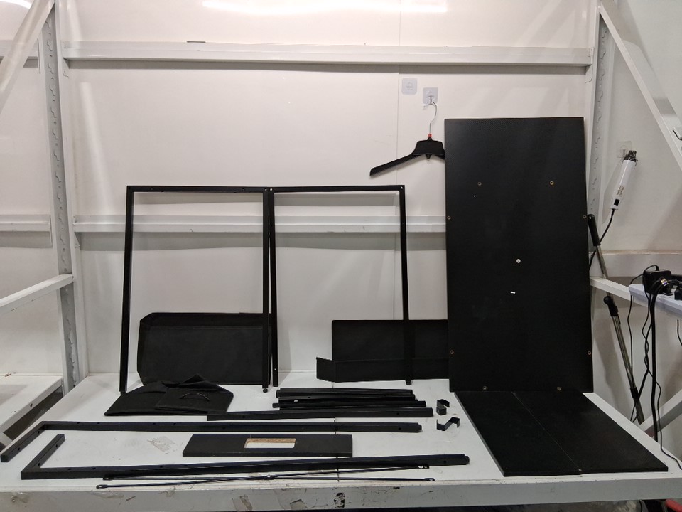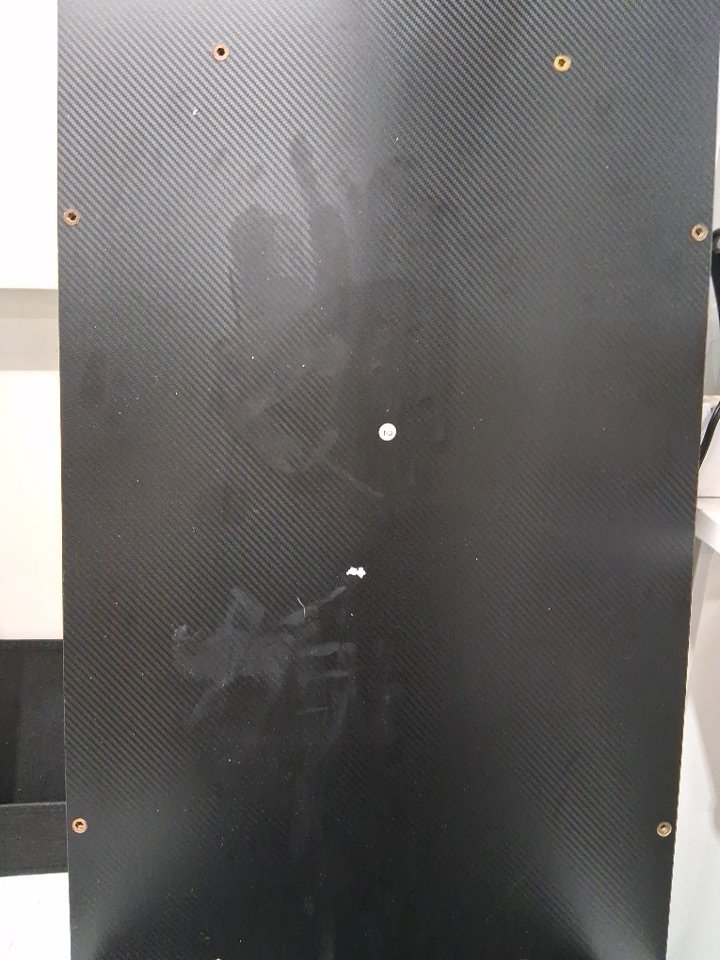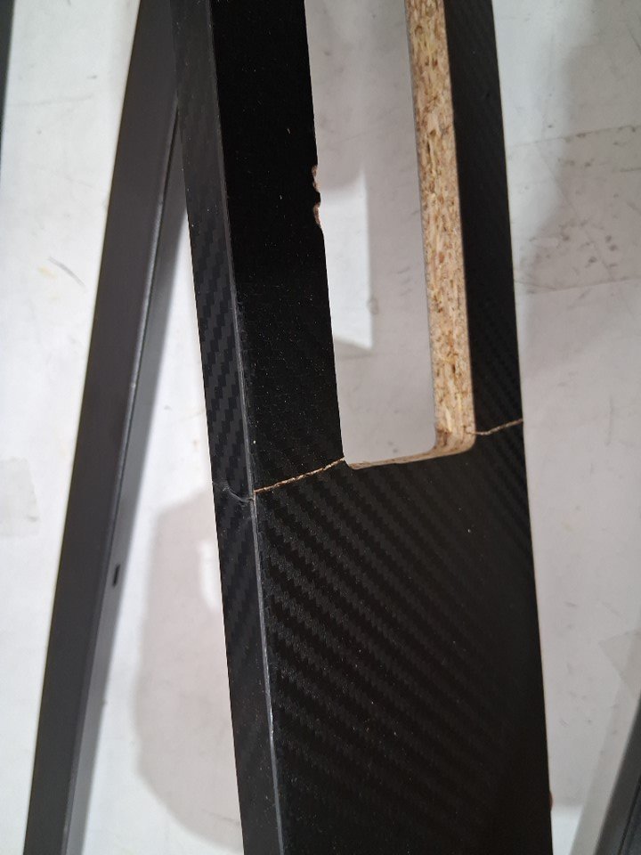 item has residue on desktop, small board is cracked and medium board has some damage to one corner item is also missing usb outlet and led light strip ( see photos)