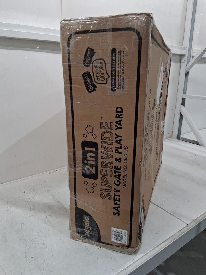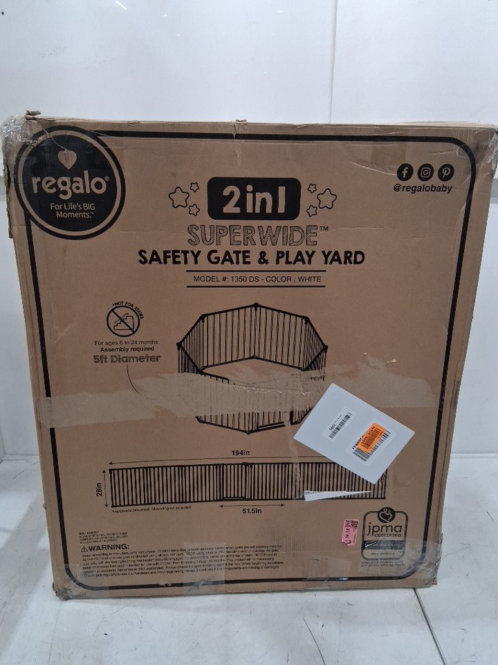 REGALO 2-IN-1 8-PANEL SUPER WIDE METAL SAFETY GATE/PLAY YARD - FITS OPENINGS UP TO 194" - 28" HIGH - WHITE (MODEL: 1350DS)