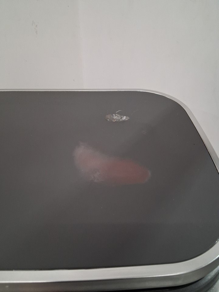 Product has some residue on the top and has some food inside the cooking chamber (See photos) cord is also slightly bent. Tested for power