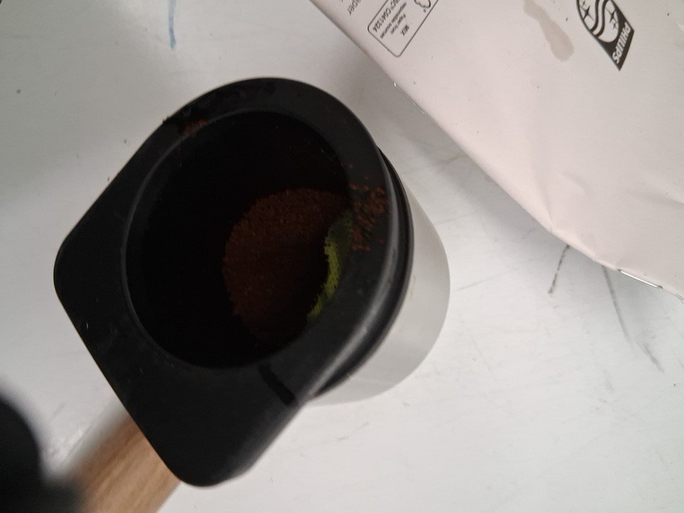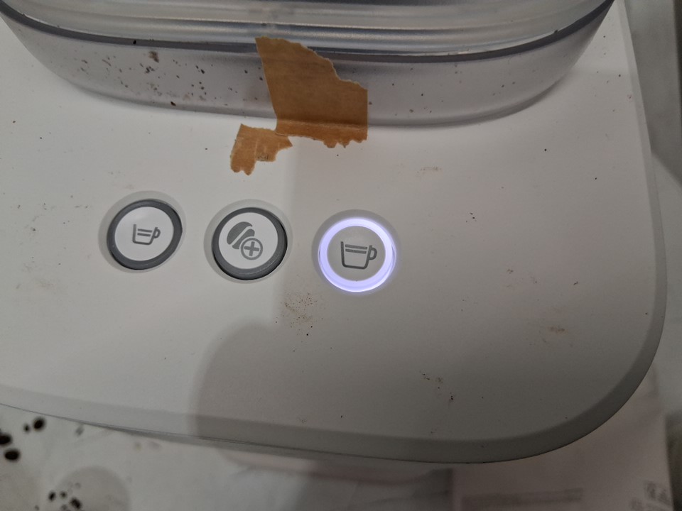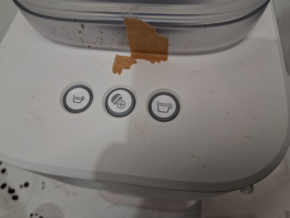 There is coffee beans that were present in the product. There is also scuff marks and some liquid present in the tank from previous use.