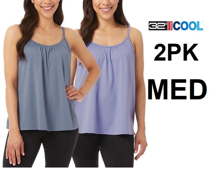 2PK WOMEN'S 32 DEGREES cool CAMI tanks tops WITH BUILT-IN BRA - medium - blue/purple (style: 1888701)
