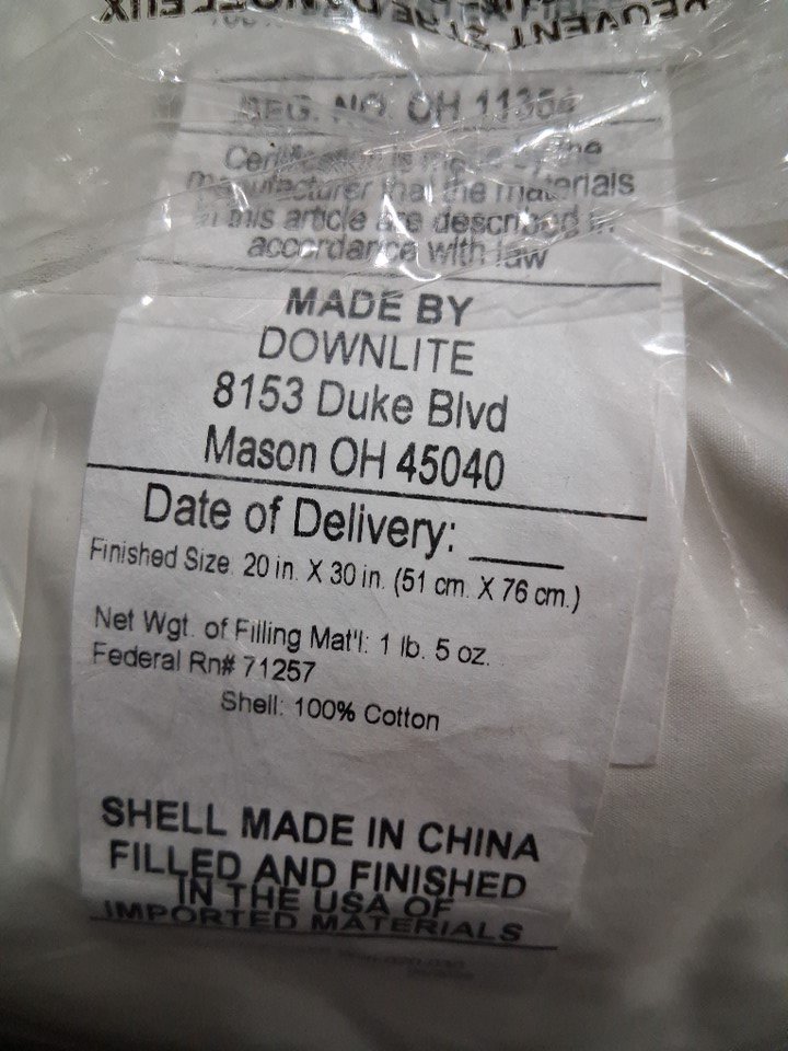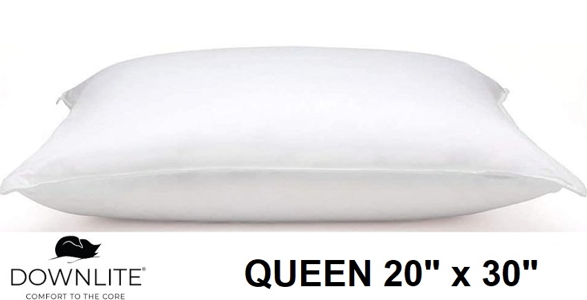 DOWNLITE Hypoallergenic Soft Down Pillow - Queen 20" x 30" - white