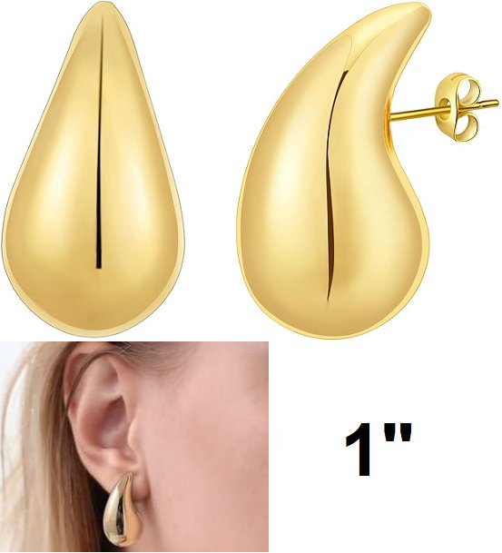 women's chunky lightweight teardrop earrings - ~1" tall/~0.5"w - gold.