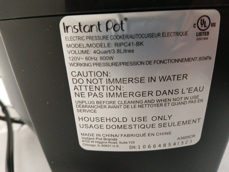 instant pot 7 in 1 rio multicooker - 4qt - 800w - 120v - black (model: ripc41-bk)