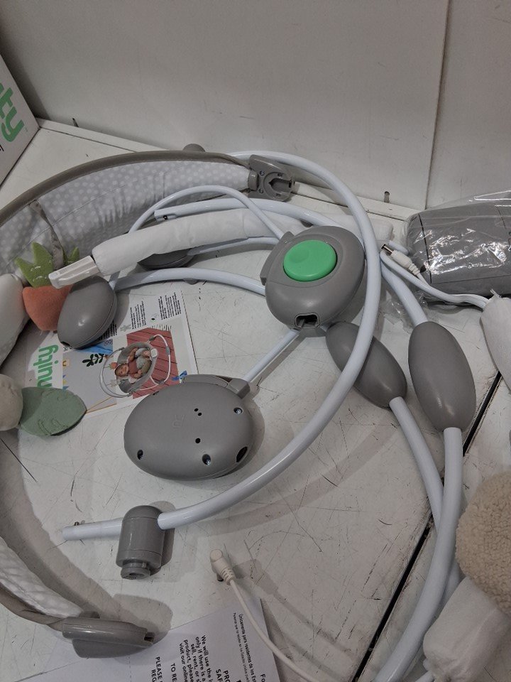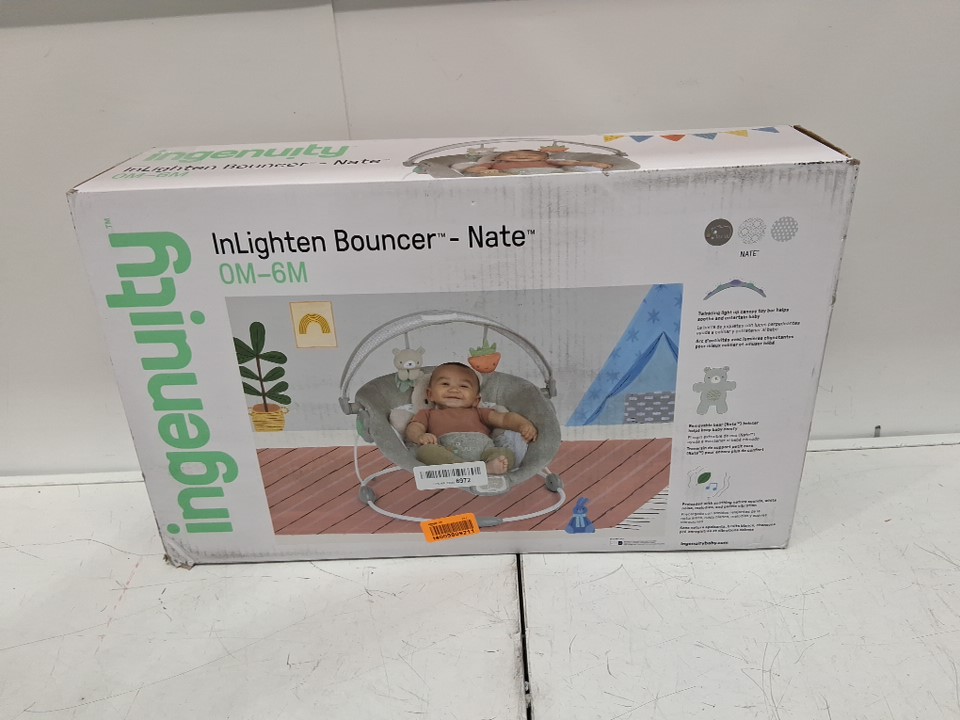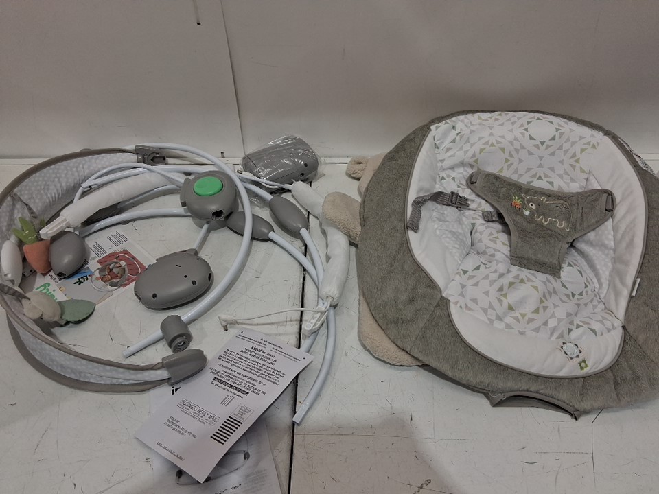 Ingenuity InLighten Baby Bouncer Seat with Light Up Toy Bar & teddy Bear Tummy Time Pillow Mat - 20LBS MAX - grey (model: 16667)