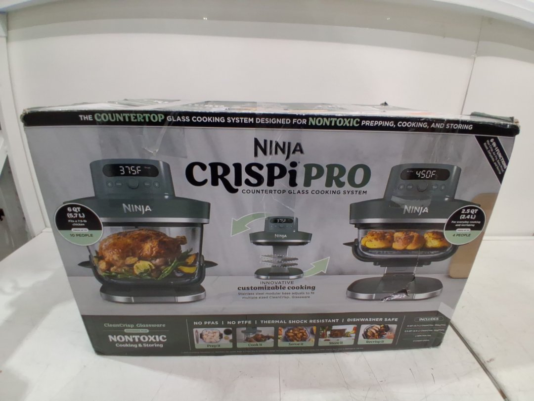 ninja crispi pro 6-in-1 glass air fryer - 2.5qt-6qt capacity - ash grey (model: as101cdg)