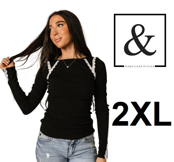 WOMENS ampersand avenue Laced In Love Long Sleeve SHIRT - 2XL - BLACK/WHITE (STYLE: AVE2525)
