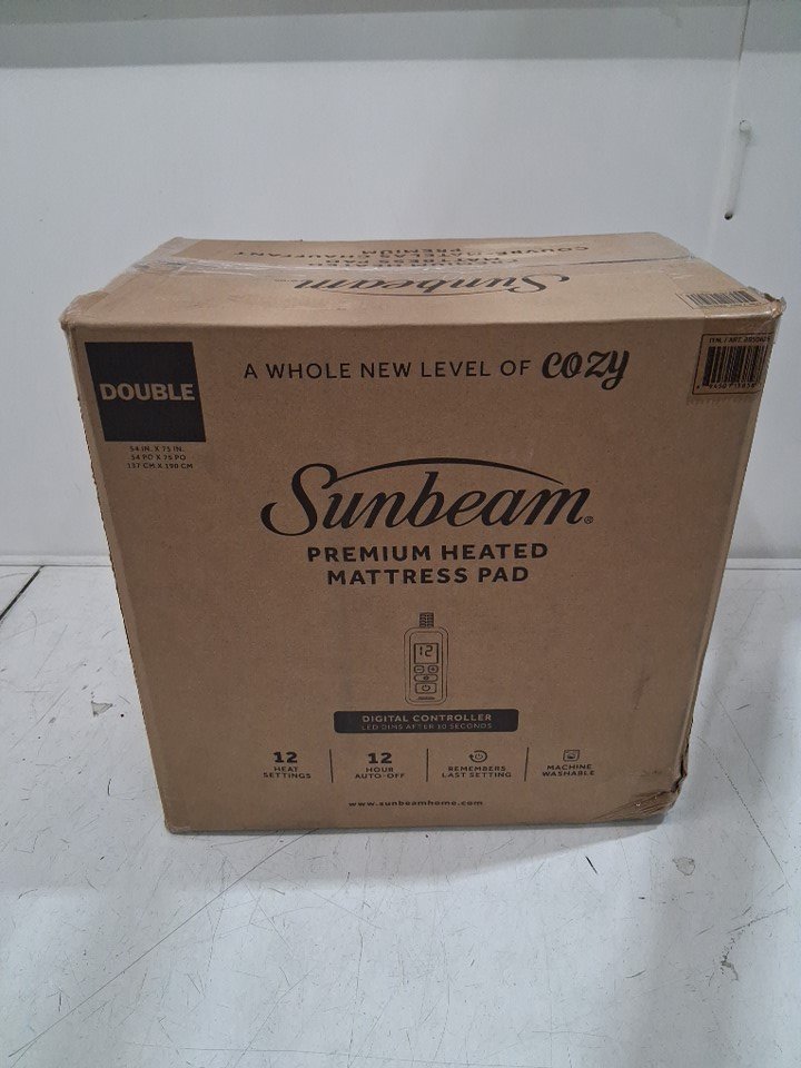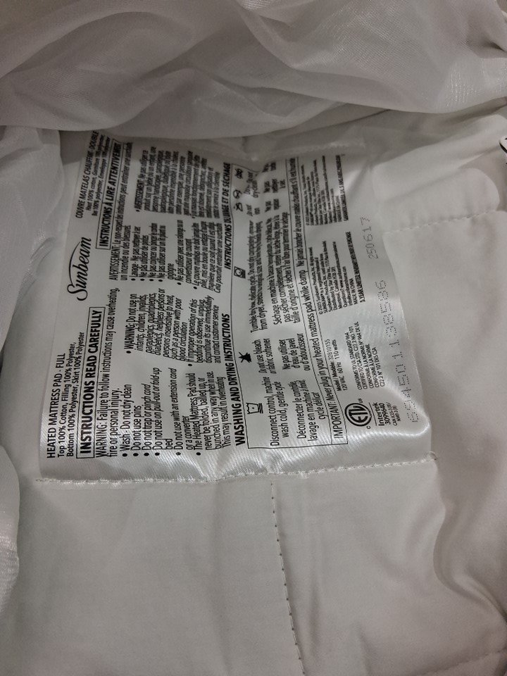 SUNBEAM RESTFUL HOURGLASS QUILTED WATER RESISTANT COTTON TOP HEATED MATTRESS PAD - WITH 12 HEAT SETTINGS - FULL/DOUBLE (54" x 75") - WHITE (MODEL: 32810029/CR0050)