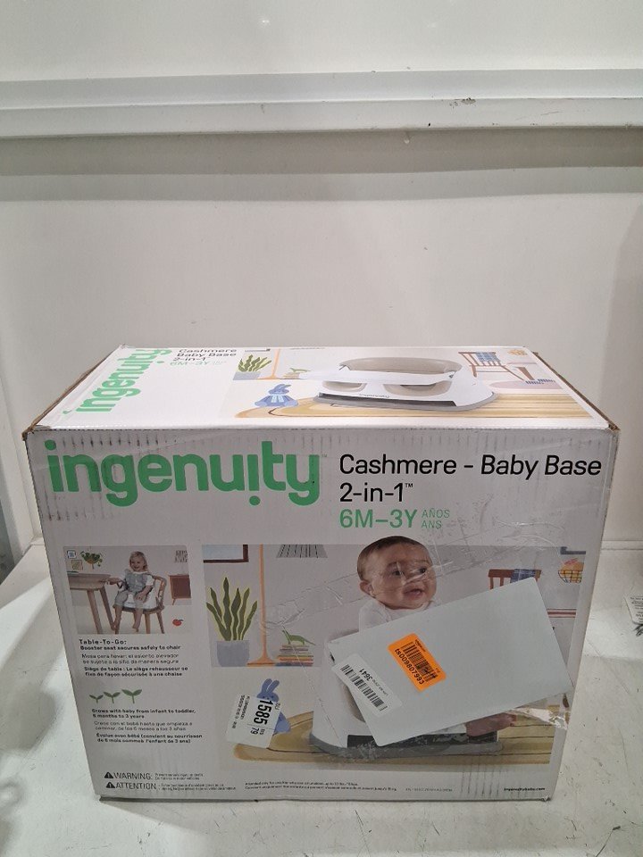 INGENUITY BABY BASE 2-IN-1 BOOSTER SEAT WITH FOOD & DRINK TRAY - 50LBS CAPACITY - WHITE/SLATE GREY (MODEL: 11576)