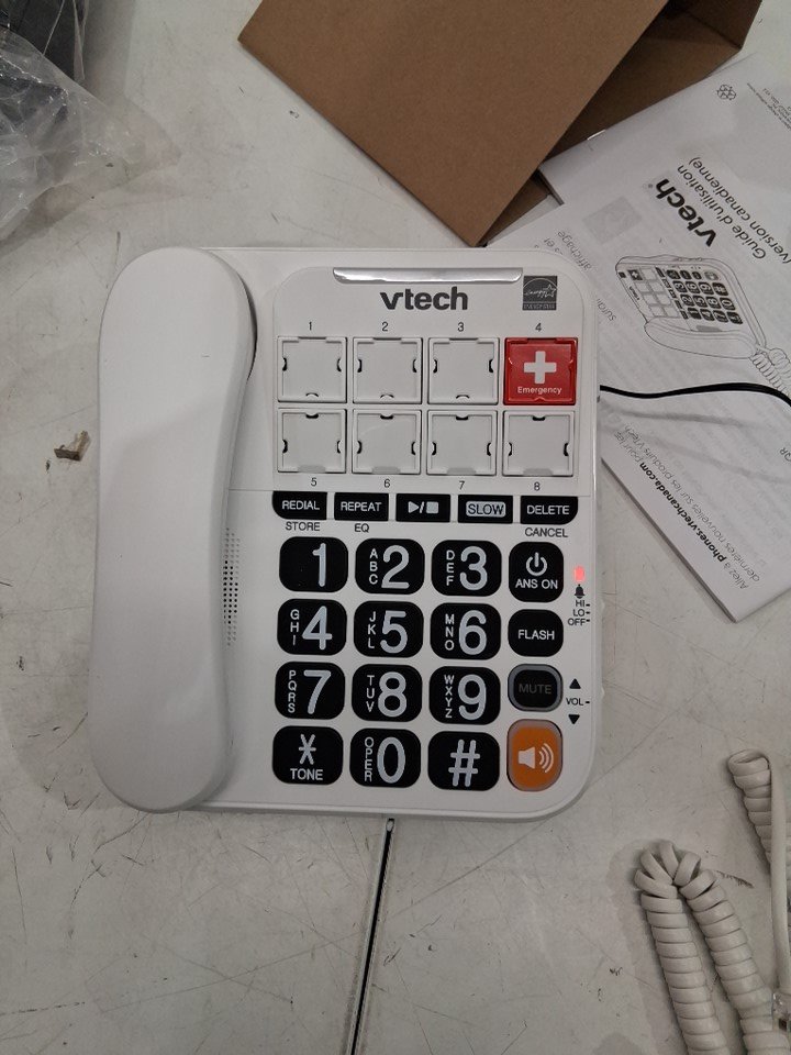 VTECH Amplified Corded Answering System - 8 Photo Speed Dial, 90dB Ringer Volume, Big High-Contrast buttons, Audio Booster(+40db), Visual Ringer. Perfect for Seniors, Visually & Hearing Impaired - WHITE (MODEL:SN1127)