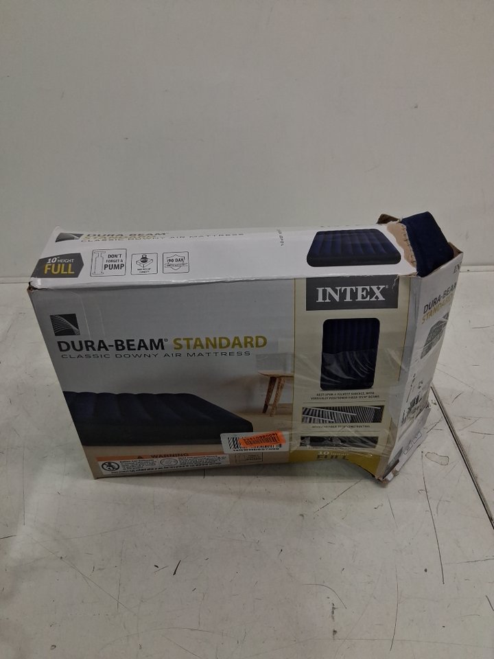 INTEX DURABEAM STANDARD DOWNY AIR MATTRESS WITH 300LB WEIGHT CAPACITY - 10" full - blue/GREY (MODEL: 64758E)