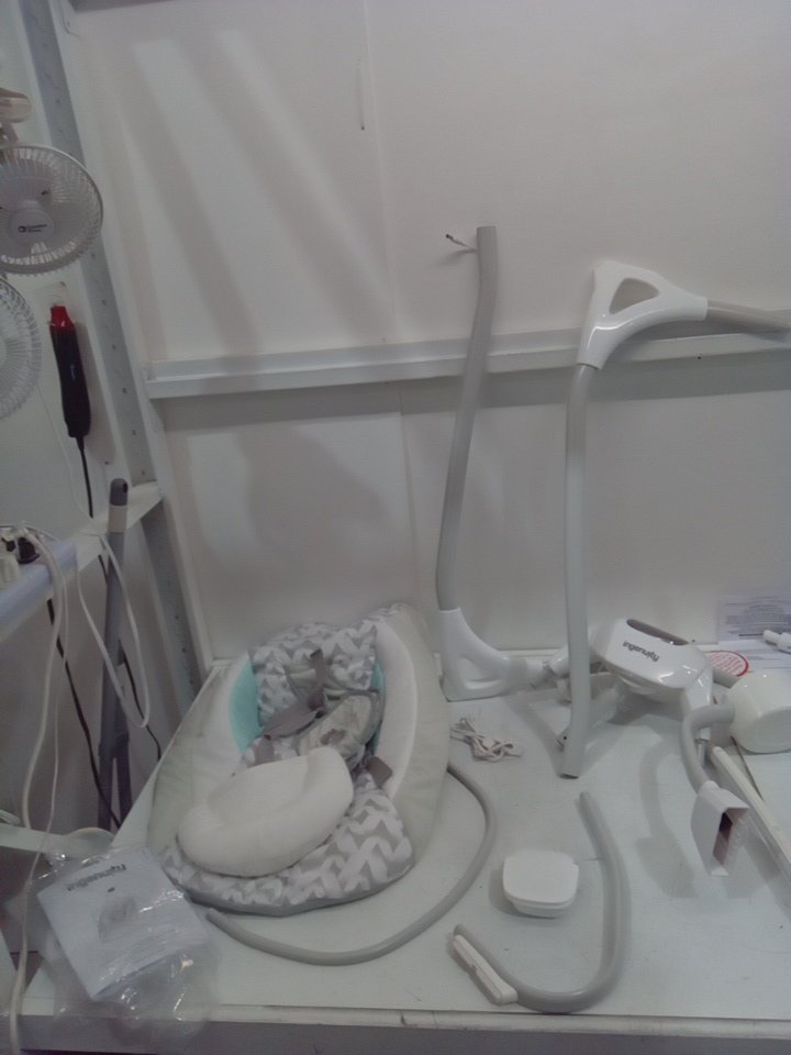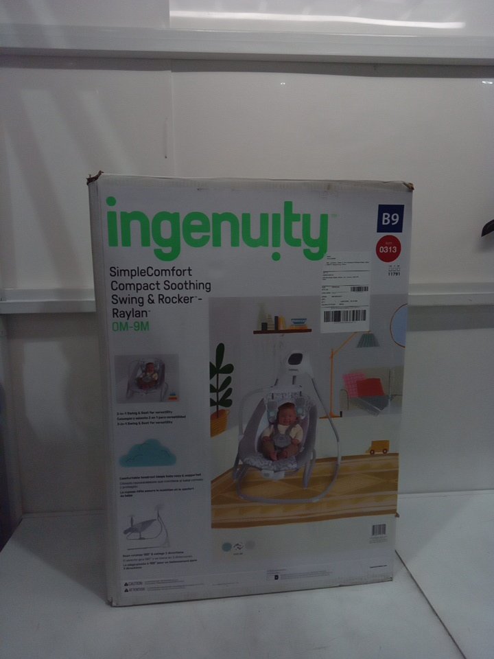 INFANT INGENUITY SIMPLECOMFORT CRADLING ROCKER PLUG-IN SWING WITH SOOTHING VIBRATIONS AND 6 SPEEDS - RAYLAN - WHITE/GREY (MODEL: 11791 0313)
