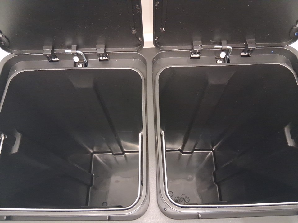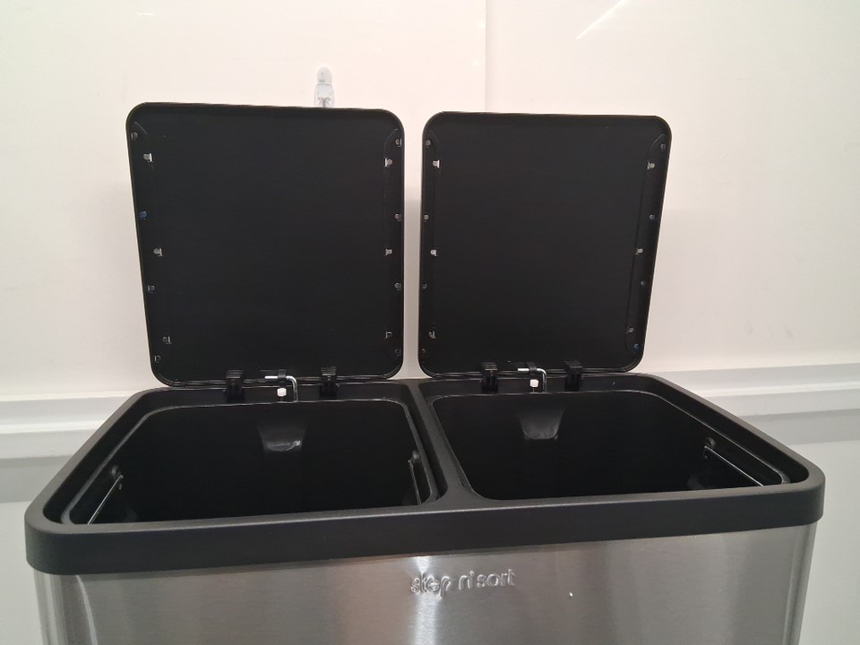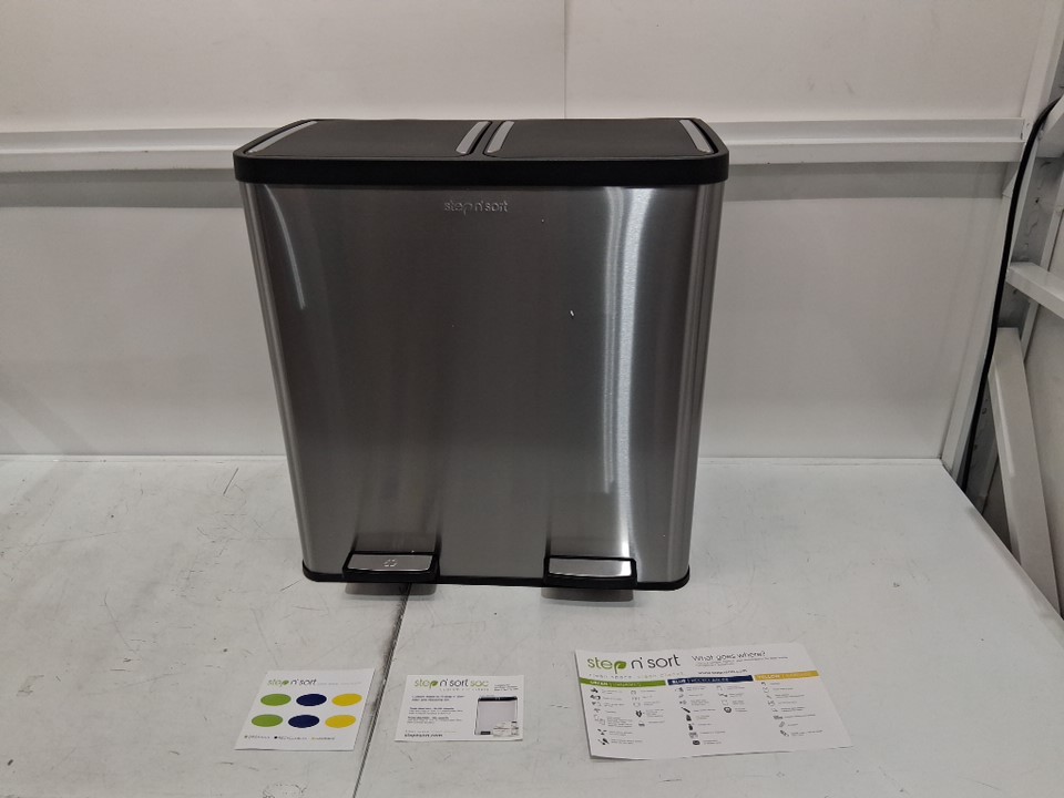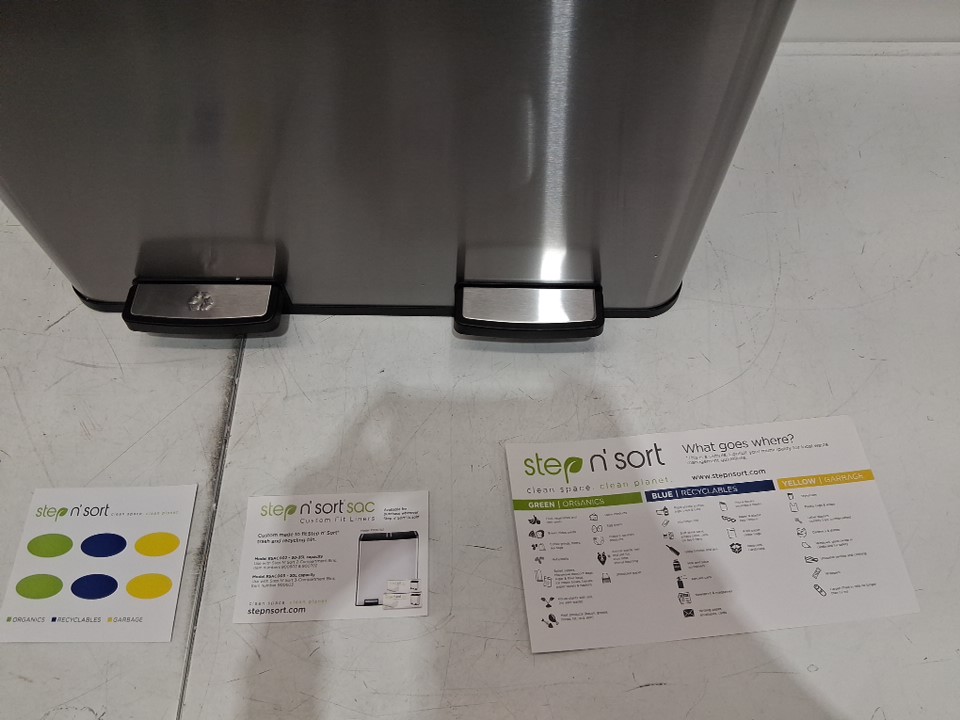 The Step N' Sort 2-bin Soft-Step Trash and Recycling Bin with Removable Inner Bins - 18GAL - Silver (MODEL: 900702)