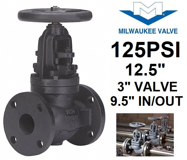 MILWAUKEE GLOBE VALVE, FOR GAS/OIL/STEAM/WATER, CAST IRON, Z-BODY, 450 DEGREE MAX - 3" VALVE, 9.5" IN/OUT, 12.5" - BLACK - (MODEL:WWG39A291)