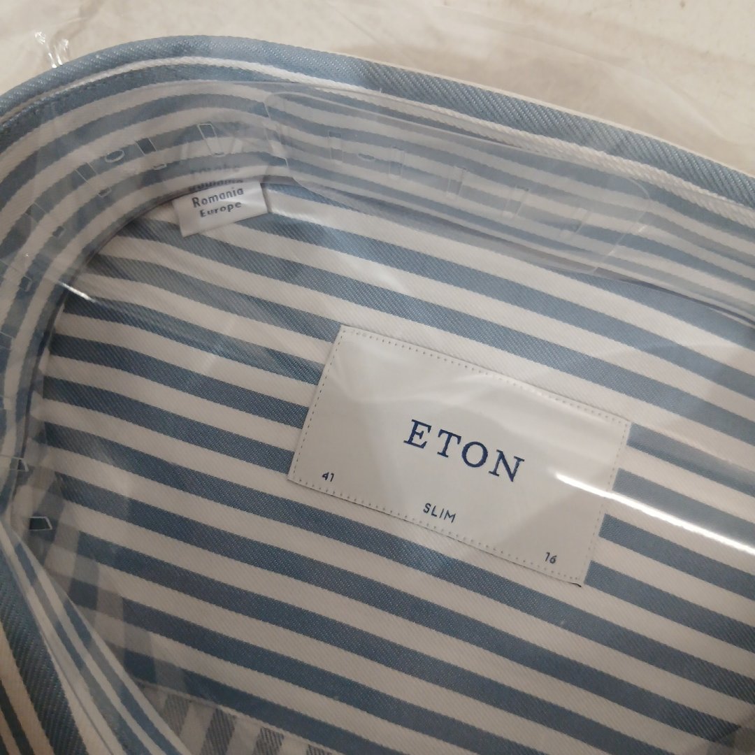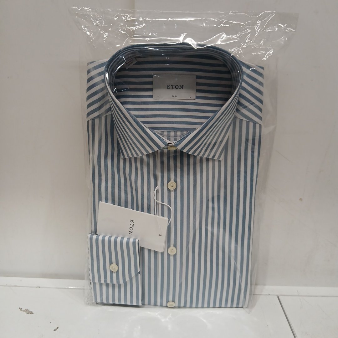 MEN'S ETON STRIPED LONG-SLEEVE DRESS SHIRT - MEDIUM, SLIM FIT - LIGHT BLUE