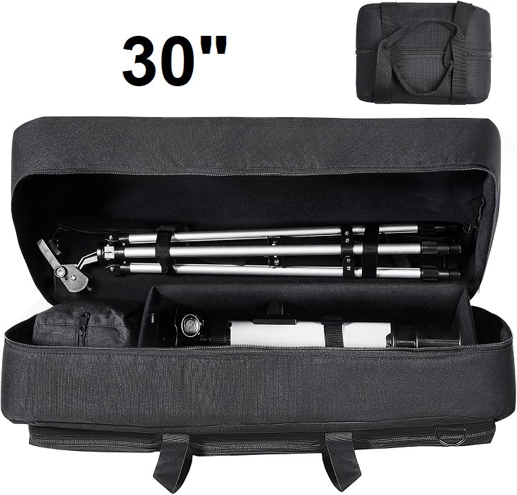 Telescope Storage Bag Case - 30", with Fixed Buckles, Multi-Pocket, Detachable Divider, Shock-Absorbent, Counterweight Pocket - black (model: chwyj003)